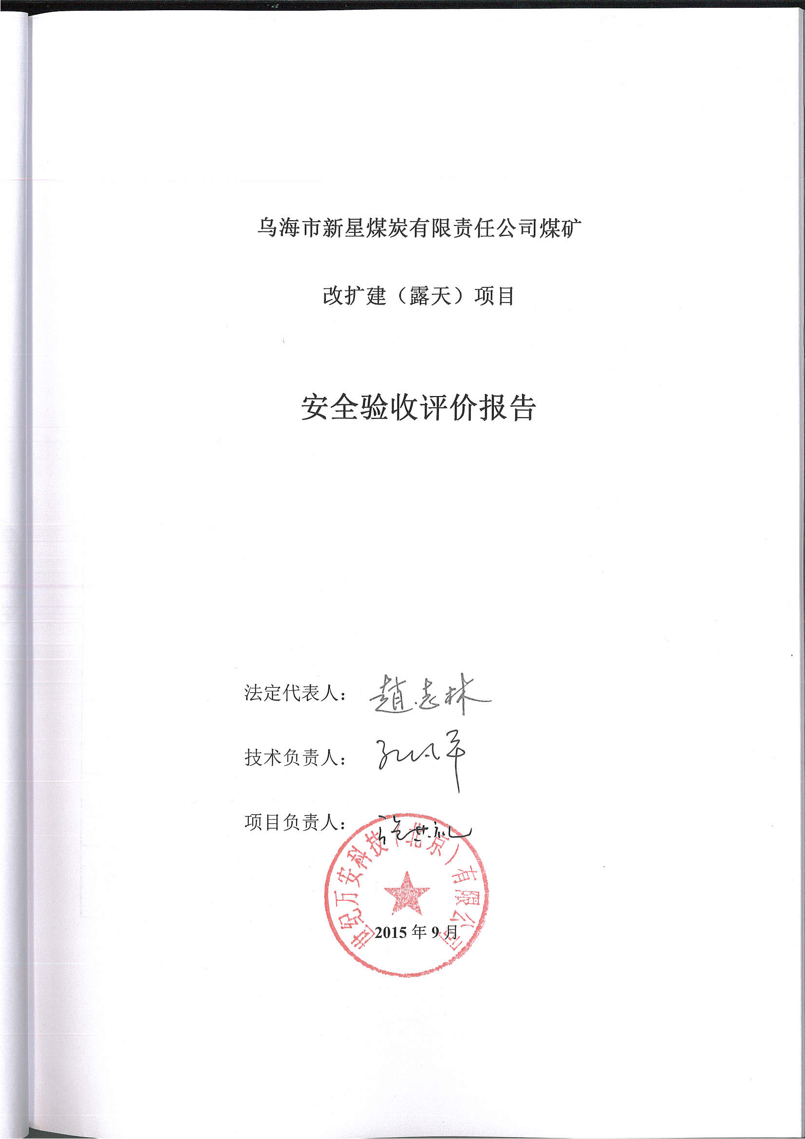 [2015年三季度]烏海市新星煤炭有限責任公司煤礦改擴建(露天)項目安全驗收評價報告_頁面_1