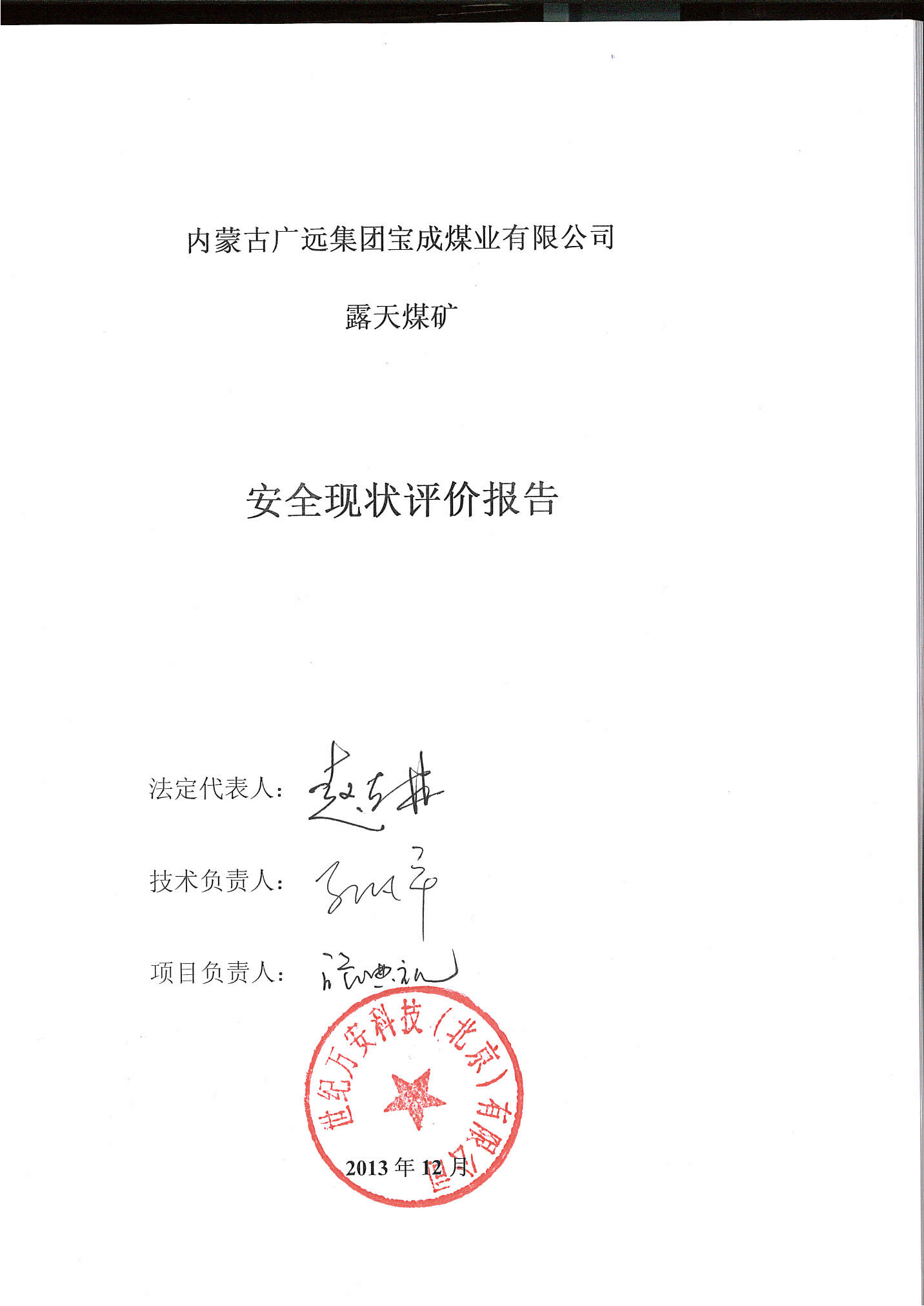 [2014年第一季度]內蒙古廣遠集團寶成煤業(yè)有限公司(露天)礦安全現狀評價報告