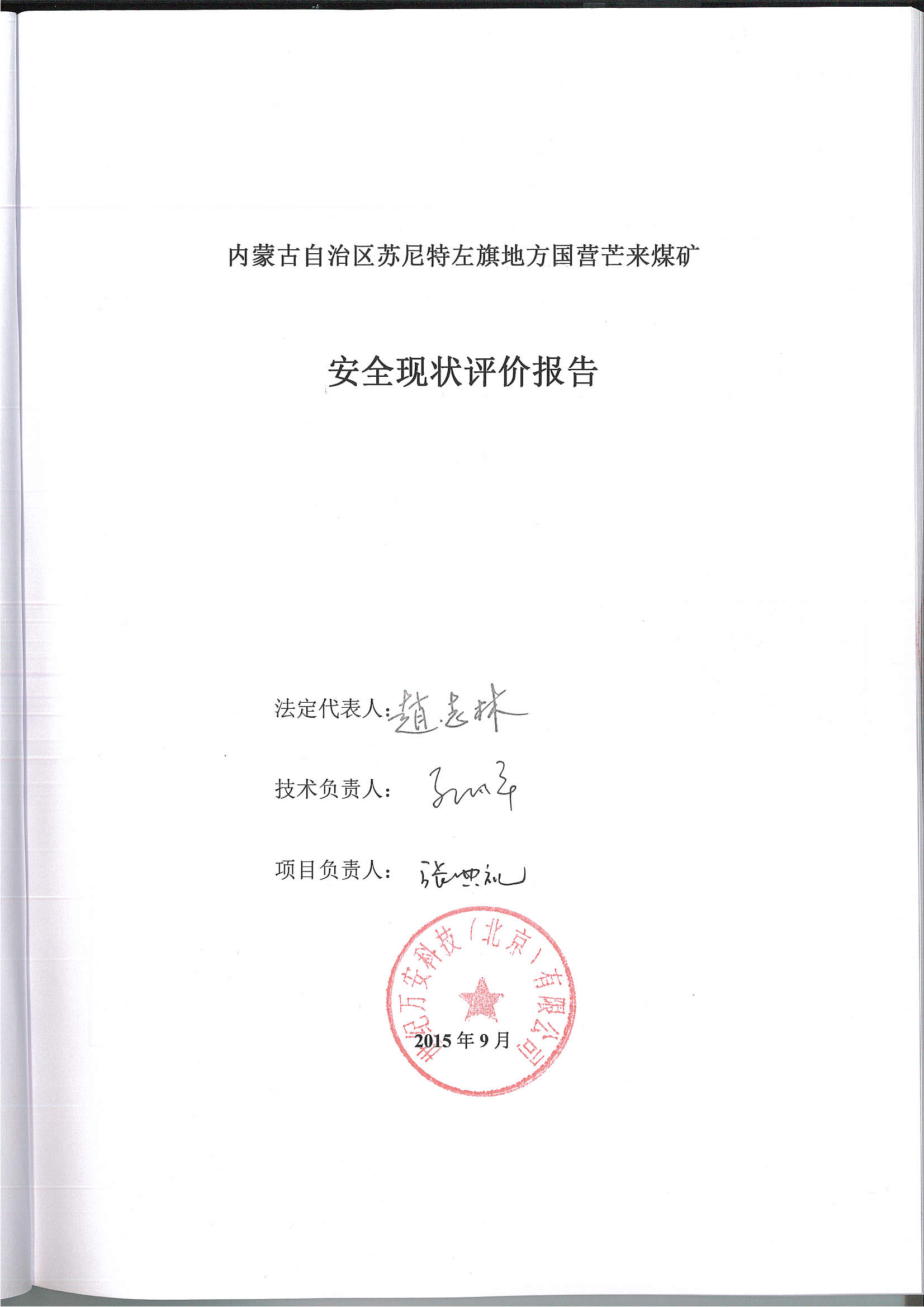 [2015年三季度]內(nèi)蒙古自治區(qū)蘇尼特左旗地方國營芒來煤礦安全現(xiàn)狀評價報告_頁面_1